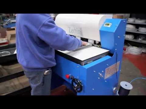 Полуавтоматична, пневматична преса за поставяне на топъл печат, мобилна върху колела за апликиране на фолио за топъл печат (злато, сребро, пастелни цветове) върху корици, картички, текстил. Ръчно подаване на материала и пневматично последващо пресоване посредством пневматичен цилиндър.